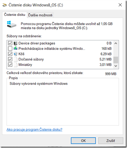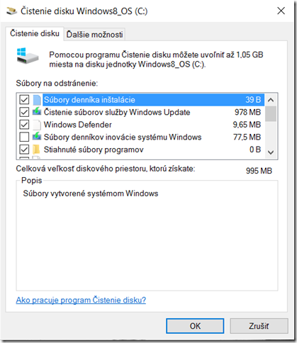 Potom označte všetky položky okrem "Súbory denníkov inovácie systému Windows" - viď obrázky - a dajte OK. Po vyčistení reštartujte počítač.