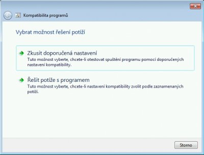 V prípade problémov pri uvedenom postupe odporúčame využiť ďalšiu možnosť v ponuke - Odstrániť problémy s kompatibilitou (Troubleshoot compatibility), potom zvoliť Skúsiť doporučené nastavenia a postupovať podľa pokynov na obrazovke: