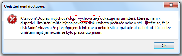 Po úspešnej aktivácii školskej sieťovej multilicencie sa nespustí program, ale zobrazí sa fráza podobná tejto vzorovej fráze, kde v uvedenej ceste je medzera v názve exe súboru: "Umiestnenie nie je dostupné. K:\silcom\Dopravná výchova\dopr_výchova .exe odkazuje na umiestnenie, ktoré už nie je k dispozícii. Umiestnenie môže byť na pevnom disku tohto počítača alebo v sieti..."