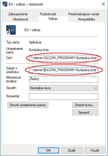 Prejdite na lokálnu stanicu, v adresári na serveru nájdite vytvoreného zástupcu, kliknite naň pravým tlačidlom myši a zvoľte možnosť Vlastnosti. V riadkoch "Cieľ" a "Spustiť v" začína cesta písmenom (napr. K:\) - pozri obr. 1. Kliknite na tlačidlo Otvoriť umiestnenie súboru (pozri obr. 2). Otvorí sa nové okno a súčasne sa automaticky zmení cesta vo vlastnostiach zástupcu v riadkoch "Cieľ" a "Spustiť v" na žiadanú UNC cestu začínajúcu dvoma lomkami - pozri obr.3. Teraz stačí len potvrdiť OK.