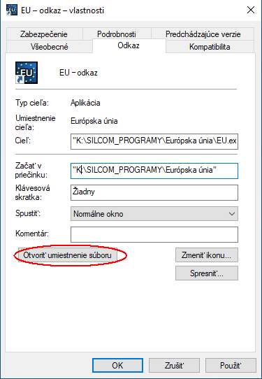 Vytvorenie zástupcu k spúšťaciemu exe súboru