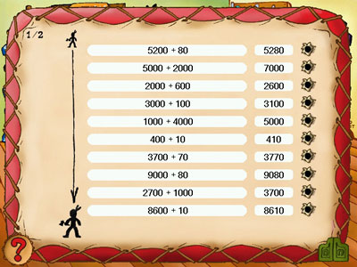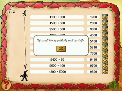 V tejto lokácii je potrebné okrem správne vypočítaných príkladov ešte vypočítané výsledky zoradiť od najmenšieho po najväčší - viď nápovedu v programe kliknutím na červený otáznik vľavo dole na obrazovke.
